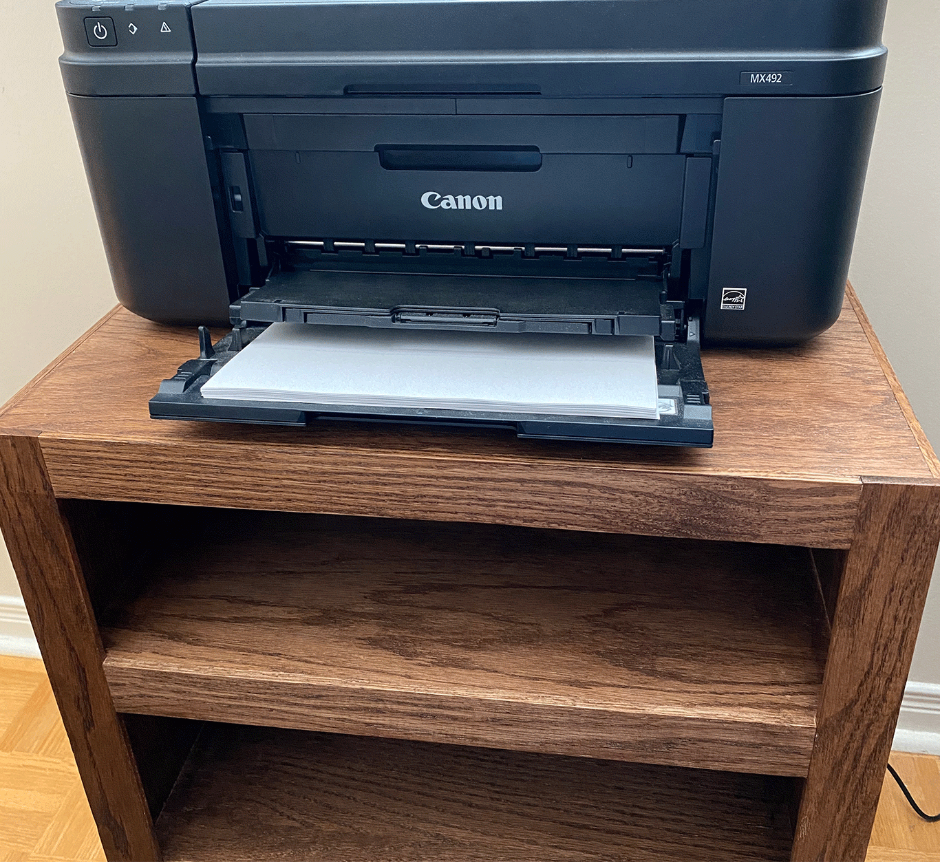 STEP 7: Once your printer station is fully assembled, be sure to round over all of the sharp edges by sanding with a 150-grit sanding sponge.