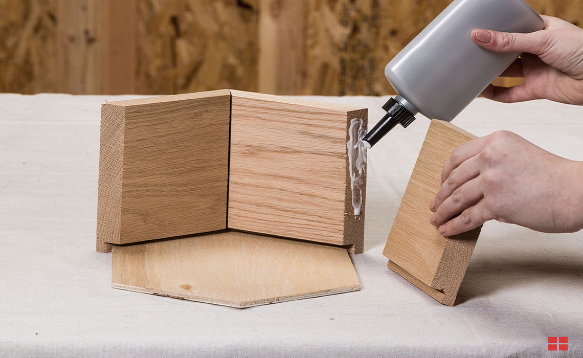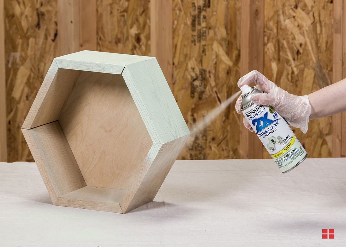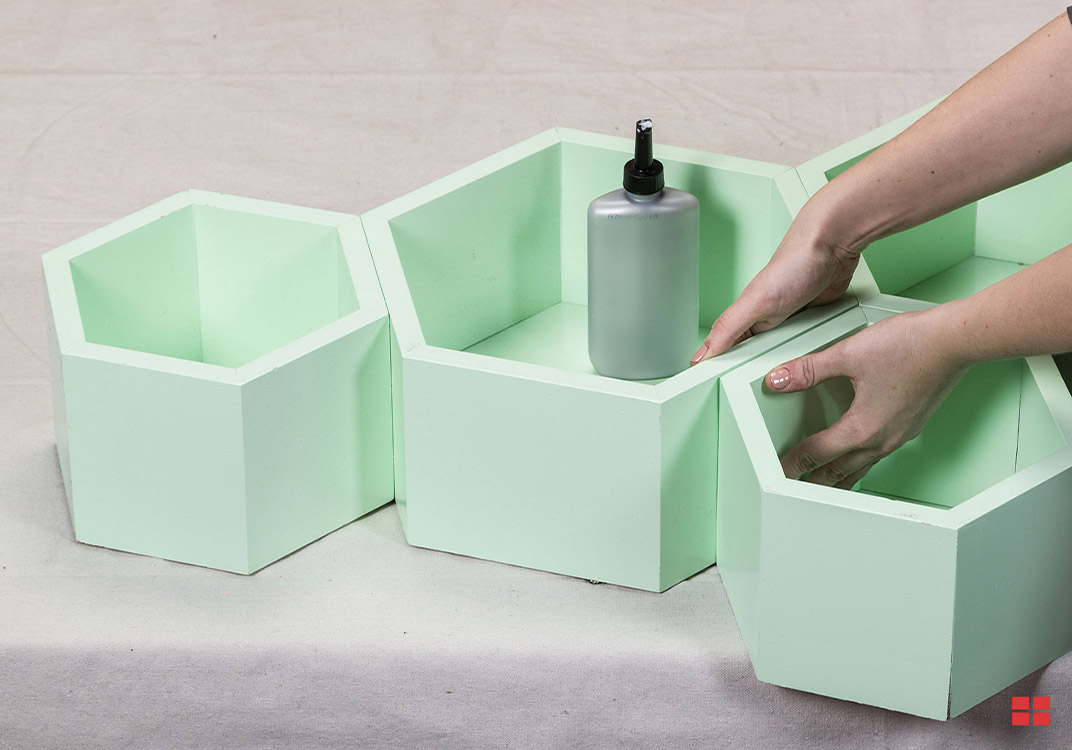 Using wood glue, construct the 3D hexagon shapes. Let the wood glue dry for about an hour.